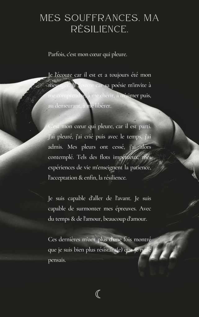 Une aventure empreinte de douceur qui saura, je l’espère, vous faire avancer avec écoute et amour, sur la route de l’épanouissement personnel.
